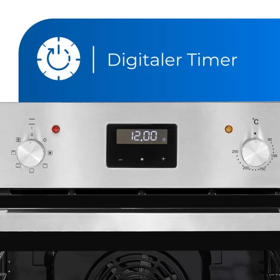 Der Einbaubackofen EBE 657-2 U in der Farbe Inoxlook von Exquisit ist ein Blickfang für Ihre Küche. Die Energieklasse des Gerätes ist Klasse A (Skala Energieeffizienzklasse A+++ bis D). Das Gerät selber hat folgende Ausmaße: 59,5 x 59,5 x 55,8 cm (Höhe/Breite/Tiefe). Als Einbaugerät integriert es sich perfekt in Ihre vorhandene Küche. Der Einbaubackofen bietet Ihnen ein Garraum-Volumen von 59 Liter – reichlich Platz für die Zubereitung Ihres Gebäcks oder Speisen. Die Temperatur lässt sich im Bereich 50 – 250 °C regeln. Bei der Wahl der optimalen Zubereitung stehen Ihnen 7 Funktionen zur Verfügung. Hierzu gehören: Ober- und Unterhitze, Unterhitze, Grillfunktion, Umluft, Auftaufunktion und mögliche Kombinationen einzelner Funktionen. Sogar bei schlechten Lichtverhältnissen behalten Sie Dank der hellen Backofenbeleuchtung den Überblick. Der Einbaubackofen EBE 657-2 U von Exquisit begeistert mit seinen Funktionen.