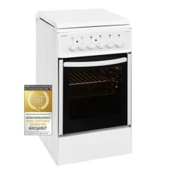 Funktional und praktisch: So ist der Standherd EH 10.3 F2 in der Farbe Weiß von Exquisit. Die Energieklasse A (Skala Energieeffizienzklasse A+++ bis D) des Gerätes freut nicht nur Sie, sondern auch die Umwelt. Die Maße des Gerätes betragen 84,0 x 48,5 x 60,0 cm (Höhe/Breite/Tiefe). Praktisch ist seine freistehende Bauart. Ohne Schwierigkeiten lässt sich das Gerät überall in Ihrer Küche aufstellen und angeschlossen werden. Der Standherd hat 4 Kochplatten, die Sie separat steuern können. Die Restwärmeanzeige zeigt Ihnen deutlich an, welche Kochzone heiß ist und verhindert hierdurch Verbrennungen. Mit einem Garraum-Volumen von 50 Liter bietet der Backofen reichlich Platz für Ihre Speisen. Die Temperatur lässt sich im Bereich 50 – 240 °C regeln. Bei der Selektion der optimalen Zubereitung stehen Ihnen 4 Funktionen zur Verfügung. Hierzu gehören: Ober- und Unterhitze, Oberhitze, Unterhitze und mögliche Kombinationen einzelner Funktionen. Durch die komfortable Backofenbeleuchtung behalten sie Ihre Speisen durchgehend im Blick. Wenn Sie einen verlässlichen und leistungsstarken Standherd suchen, ist der EH 10.3 F2 von Exquisit genau richtig für Sie.