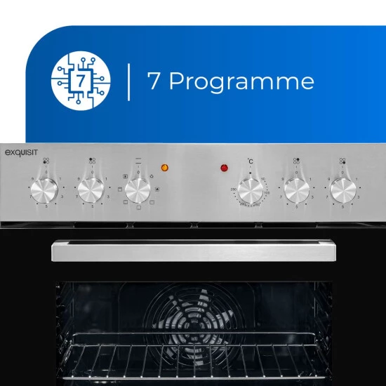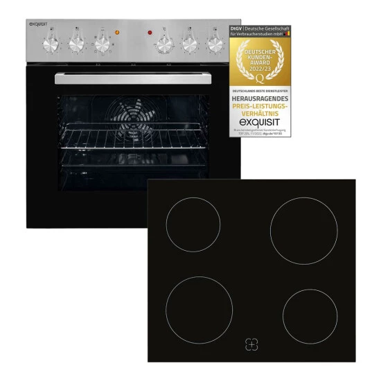 Funktional und praktisch: So ist das Einbauherd-Set EHE 156-2.1 U-Set in der Farbe Inoxlook. Das Gerät besitzt die Energieklasse A (Skala Energieeffizienzklasse A+++ bis D). Die Abmessungen des Einbauherds betragen 59,5 x 59,5 x 51,0 cm (Höhe/Breite/Tiefe). Das Kochfeld selber besitzt die Maße 6,8 x 58,0 x 51,0 cm (Höhe/Breite/Tiefe). Das Gerät passt sich als Einbaugerät nahtlos in Ihre exisiterende Küchenzeile ein. Das Kochfeld hat 4 Kochplatten, die Sie separat steuern können. Die Restwärmeanzeige zeigt Ihnen deutlich an, welche Kochzone heiß ist und verhindert auf diese Weise schmerzhafte Verbrennungen. Der Backofen bietet Ihnen ein Garraum-Volumen von 59 Liter – reichlich Platz für die Zubereitung Ihres Gebäcks oder Speisen. Die Temperatur lässt sich im Bereich 50 – 250 °C regeln.Insgesamt 7 Funktionen stehen zur Selektion zur Verfügung. Hierzu gehören: Ober- und Unterhitze,Oberhitze,Unterhitze,Grillfunktion,Umluft, und mögliche Kombinationen einzelner Funktionen. Selbst bei schlechten Lichtverhältnissen behalten Sie Dank der hellen Backofenbeleuchtung den Überblick.