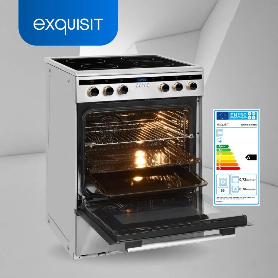 Der Standherd EHI 60-3.1 Inox in Inoxlook ist ein Hingucker für Ihre Küche. Das Gerät bietet die Energieklasse A (Skala Energieeffizienzklasse A+++ bis D). Die Abmessungen des Gerätes betragen 82,0 x 59,5 x 65,0 cm (Höhe/Breite/Tiefe). Durch seine freistehende Bauart lässt sich das Gerät an jedem Platz aufstellen und in Betrieb genommen werden.