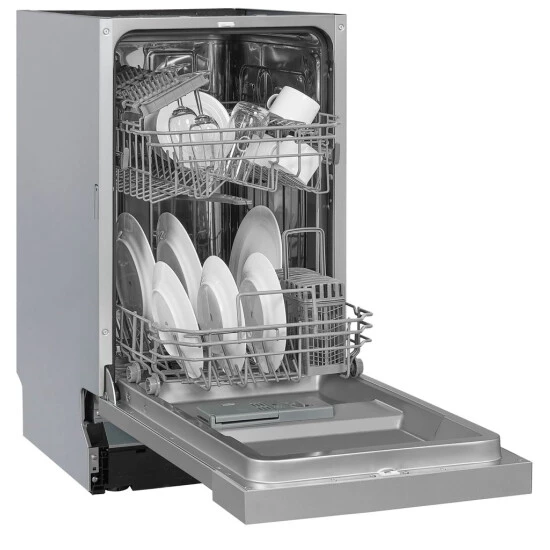 Der EGSP1009-E-030E bietet 5 unterschiedliche Spülprogramme. Je nach zu reinigendem Inhalt und Verschmutzungsgrad können Sie einfach und komfortabel das bestmögliche Programm wählen. Die jeweilige Spültemperatur bewegt sich je nach Spülprogramm in dem Bereich von 40 – 65 °C. Speziell für kleinere oder Single-Haushalte rechnet sich die Halbe-Beladung-Funktion des EGSP1009-EB-030E, da man mit ihm bei einer teilbeladenen Maschine spürbar an Wasser sparen kann, ohne die Reinigungsleistung zu minimieren. Die elektronische Salzmangelanzeige zeigt Ihnen auf einen Blick, ob sie Salz auffüllen müssen. Ein umständliches Überprüfen direkt am Salzbehälter entfällt somit. Damit Ihre Gläser nach jeder Reinigung glänzen, sagt Ihnen die elektronische Klarspülermangelanzeige, wenn Sie Klarspüler auffüllen müssen. Der entnehmbare Korb bietet Ihnen vielseitigen Platz für Ihr Besteck.