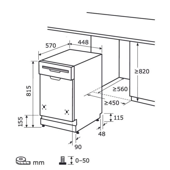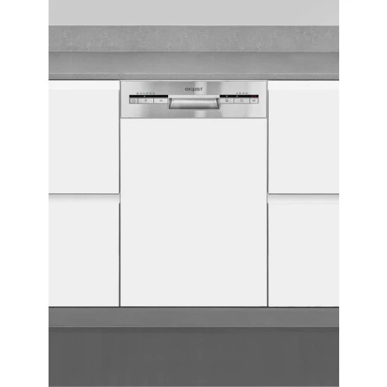 Der EGSP1009-EB-030E inox ist ein teilintegrierbarer Geschirrspüler und begeistert mit vielfältigen Funktionen und umfassender Ausstattung. Als Einbaugerät integriert es sich ideal in Ihre vorhandene Küche. Das Volumen des Geschirrspülers beträgt 9 Maßgedecke. Der Inhalt eines solchen Gedecks ist durch eine spezielle Norm (DIN EN 50242) festgelegt. Das Gerät bietet die Energieklasse E (Skala Energieeffizienzklasse A bis G). Der Energieverbrauch im Standard-Reinigungszyklus liegt durchschnittlich bei 1,260 kWh/Zyklus. Bei Verwendung benötigt das Gerät 9 L/Zyklus. Das Gerät besitzt die Maße 81,5 x 44,8 x 55,0 cm (Höhe/Breite/Tiefe).