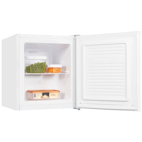 Der Mini-Gefrierschrank ist die Geheimwaffe für das Lagern von Eis und kleinem Gefriergut. Insgesamt stehen Ihnen 33 l Nutzinhalt zur Verfügung. Das Gerät in der Farbe Weiß hat die Abmaße 51,0 x 44,0 x 47,5 cm (Höhe/Breite/Tiefe) und hat die Energieeffizienzklasse E (Skala Energieeffizienzklasse A bis G). Durch seine freistehende Bauart lässt es sich an jedem Ort aufstellen und in Betrieb genommen werden. Der wechselbare Türanschlag sorgt hierbei für noch mehr Flexibilität beim Aufstellen. Der 4*-Gefrierbereich verfügt über eine Kapazität von 33,0 l und bietet den idealen Ort für Eis, Tiefkühlpizza und alles andere.