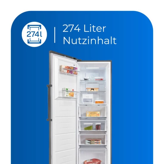 - 274 Liter Nutzinhalt – extrem viel Platz für Ihr Tiefkühlgut