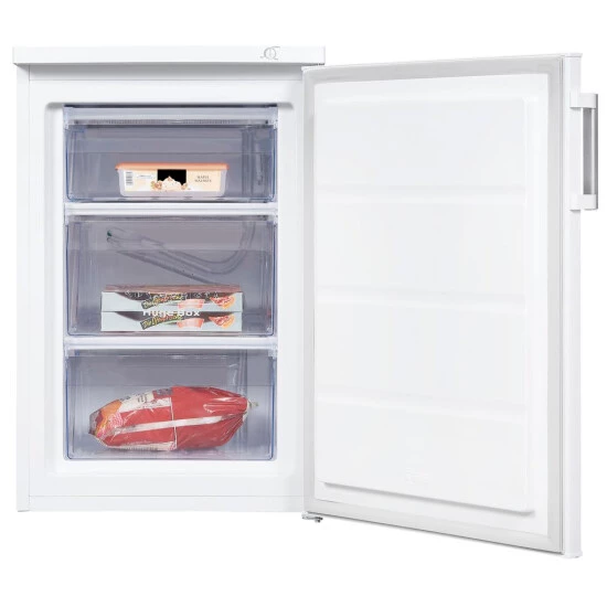 Der Gefrierschrank GS81-H-010D weiss in der Farbe Weiß wird Sie begeistern. Eine Energieklasse D (Skala Energieeffizienzklasse A bis G) entlastet nicht nur die Umwelt, sondern auch Ihren Geldbeutel. Die Abmessungen des Gerätes betragen 84,5 x 56,0 x 57,5 cm (Höhe/Breite/Tiefe). Nützlich ist vor allem seine freistehende Bauart. Ohne Sorgen lässt sich das Gerät überall in Ihrer Wohnung aufstellen und anschließen . Auf welcher Seite sich das Gerät öffnen lässt, wählen Sie dank wechselbarem Türanschlag. Der Gefrierbereich hat 85 Liter Nutzinhalt und besitzt ein Gesamtgefriervermögen von 10 kg. Dies können Sie bequem durch die 2 Gefrierschubladen ganz nach Ihren Wünschen benutzen. Das Gerät verfügt eine Gesamtgefrierleistung von 4* / -18 Celsius im Gefrierbereich. Die Temperatursteuerung erfolgt ganz einfach manuell. Durch die integrierte Temperaturüberwachung müssen Sie sich keine Gedanken mehr über auftauchende Temperaturschwankungen machen