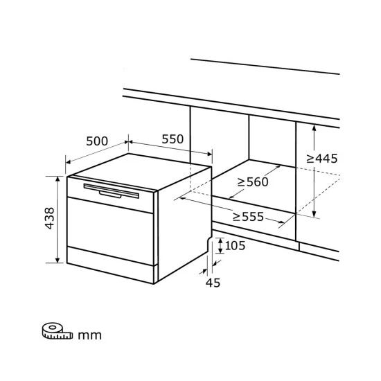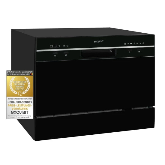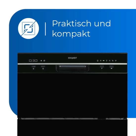 Der GSP206-030F schwarz ist ein Tischgeschirrspüler und überzeugt mit zahlreichen Funktionen und umfangreicher Ausstattung. Praktisch ist vor allem seine freistehende Bauart. Ohne Schwierigkeiten lässt sich das Gerät überall in Ihrer Wohnung aufstellen und an Wasser und Strom anschließen. Das Volumen des Geschirrspülers beträgt 6 Maßgedecke. Der Inhalt eines solchen Gedecks ist durch eine spezielle Norm (DIN EN 50242) festgelegt. Das Gerät verfügt über die Energieklasse F (Skala Energieeffizienzklasse A bis G). Der Energieverbrauch im Standard-Reinigungszyklus liegt im Durchschnitt bei 0,608 kWh/Zyklus. Bei Benutzung verbraucht das Gerät 6,5 L/Zyklus. Das Gerät für sich hat folgende Ausmaße: 43,8 x 55,0 x 50,0 cm (Höhe/Breite/Tiefe). Der GSP206-030F silber bietet 7 unterschiedliche Spülprogramme. Je nach zu reinigendem Inhalt und Verschmutzungsgrad können Sie einfach und bequem das optimale Programm wählen. Die entsprechende Spültemperatur bewegt sich je nach Spülprogramm in dem Bereich von 40 – 70 °C. Neben den herkömmlichen Spülprogrammen verfügt die GSP206-030F silber über ein bequemes Selbstreinigungs-Programm. Mit diesem können Sie Ihre Spülmaschine in kurzer Zeit reinigen und sichern somit nachhaltig die Spülleistung und Funktion des Gerätes. Mit Hilfe des Schnellprogrammes wird Ihr Geschirr in nur 60 Min. wieder sauber. Die elektronische Salzmangelanzeige zeigt Ihnen auf einen Blick, ob sie Salz nachfüllen müssen. Ein umständliches Prüfen direkt am Salzbehälter entfällt somit. Kalkflecken werden Dank der elektronischen Klarspülermangelanzeige vermieden. Diese zeigt Ihnen unmittelbar an, wenn Sie Klarspüler auffüllen müssen. Der entnehmbare Korb bietet Ihnen vielseitigen Platz für Ihr Besteck. Das eingebaute Display unterrichtet Sie über den aktuellen Status Ihres Geschirrspülers. Wie lange das ausgewählte Spülprogramm noch benötigt, erfahren Sie anhand der Restlaufzeitanzeige. Damit bei einem des Gerätes kein Wasser austritt, ist der Geschirrspüler jederzeit mit einem Aqua-Stopp nachrüstbar. Wenn Sie einen zuverlässigen und leistungsstarken Geschirrspüler suchen, ist der GSP206-030F schwarz genau richtig für Sie.