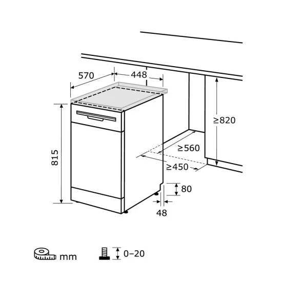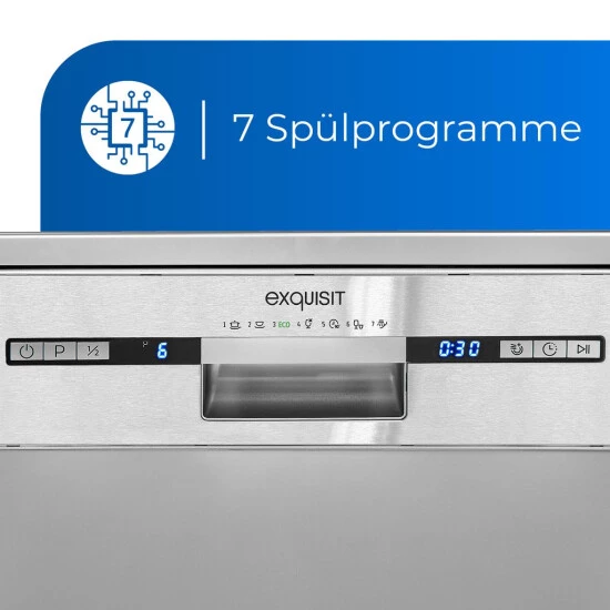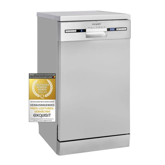 Der GSP9309-030E ist ein freistehender Geschirrspüler und überzeugt mit zahlreichen Funktionen und umfassender Ausstattung. Durch seine freistehende Bauart lässt sich das Gerät an jedem Platz aufstellen und an Waser bzw. Strom anschließen. Das Fassungsvermögen des Geschirrspülers beträgt 9 Maßgedecke. Die Energieklasse E (Skala Energieeffizienzklasse A bis G) des Gerätes begeistert nicht nur Sie, sondern auch die Umwelt. Der Energieverbrauch im Standard-Reinigungszyklus bewegt sich durchschnittlich bei 0,7 kWh/Zyklus. Bei Verwendung verbraucht das Gerät 9,0 L/Zyklus. Das Gerät besitzt die Maße 84,5 x 44,8 x 60,0 cm (Höhe/Breite/Tiefe). Der GSP9309-030E verfügt über 7 unterschiedliche Spülprogramme. Je nach zu reinigendem Inhalt und Verschmutzungsgrad können Sie einfach und komfortabel das bestmögliche Programm wählen. Die jeweilige Spültemperatur bewegt sich je nach Spülprogramm in dem Bereich von 45 – 65 °C. Die elektronische Salzmangelanzeige zeigt Ihnen auf einen Blick, ob sie Salz nachfüllen müssen. Ein umständliches Kontrollieren direkt am Salzbehälter entfällt somit. Damit Ihre Gläser nach jeder Reinigung strahlen, sagt Ihnen die elektronische Klarspülermangelanzeige, wenn Sie Klarspüler auffüllen müssen. Der herausnehmbare Korb bietet Ihnen umfassenden Platz für Ihr Besteck. Das eingebaute Display unterrichtet Sie über den aktuellen Status Ihres Geschirrspülers. Über die Restlaufzeitanzeige wissen Sie fortlaufend wie lange das aktuelle Programm noch läuft. Der Wasserauslaufschutz verhindert, dass bei einem Fehler des Geschirrspülers Wasser austreten kann.