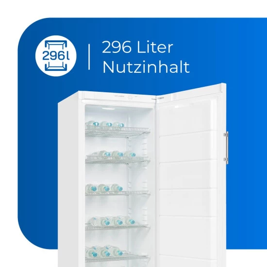Hier lagern Ihre Getränke immer bei der optimalen Temperatur. Insgesamt stehen Ihnen 296 l Nutzinhalt zur Verfügung. Das Gerät hat die Abmaße 163,0 x 60,0 x 62,0 cm (Höhe/Breite/Tiefe) und hat die Energieeffizienzklasse F (Skala Energieeffizienzklasse A bis G). Durch seine freistehende Bauart lässt es sich an jedem Ort aufstellen und in Betrieb genommen werden. Das Gerät bietet Ihnen über 296,0 l Nutzinhalt in seinem Kühlbereich, welcher mit Hilfe von teilweise verstellbaren Ablagen praktisch unterteilt ist. Damit Sie auch bei schlechten Lichtverhältnissen zielsicher an Ihre Lebensmittel gelangen, bietet Ihnen das Gerät eine Beleuchtung.