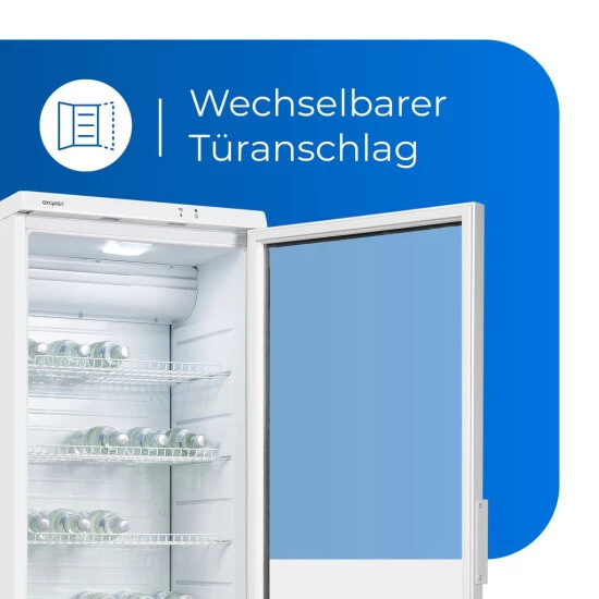 Hier lagern Ihre Getränke immer bei der optimalen Temperatur. Insgesamt stehen Ihnen 320 Liter Nutzinhalt zur Verfügung. Das Gerät in der Farbe Weiß hat die Abmaße 173,0 x 60,0 x 60,0 cm (Höhe/Breite/Tiefe) und hat die Energieeffizienzklasse G (Skala Energieeffizienzklasse A bis G). Durch seine freistehende Bauart lässt es sich an jedem Ort aufstellen und in Betrieb genommen werden. Der wechselbare Türanschlag sorgt hierbei für noch mehr Flexibilität beim Aufstellen. Damit Sie auch bei schlechten Lichtverhältnissen zielsicher an Ihre Lebensmittel gelangen, bietet Ihnen das Gerät eine Beleuchtung.