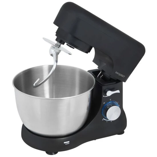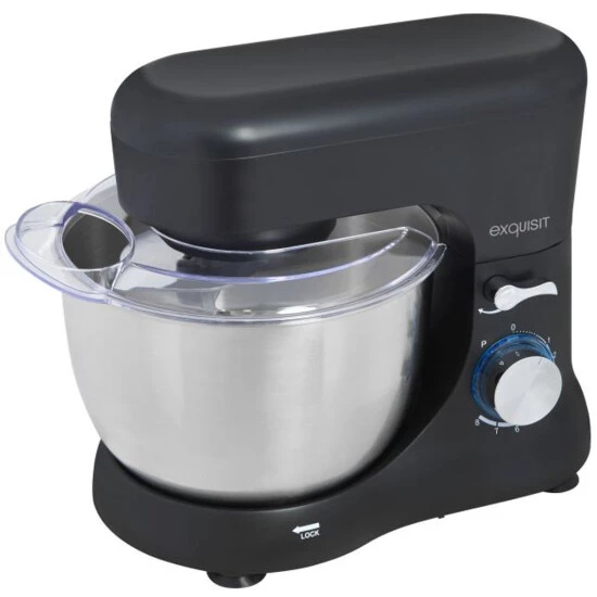 Die Exquisit Küchenmaschine im Vintage Look beinhaltet einen Schneebesen, Knethaken und Rührhaken. Dank der 1000 Watt und der 8 Geschwindigkeitsstufen mit Pulsfunktion können Sie Ihre Essen schnell und einfach zubereiten.Die Edelstahl-Rührschüssel hat ein großzügiges Fassungsvermögen von 4,5 Litern. Der transparente Deckel sorgt für Spritzschutz während des Betriebes und Sie haben trotzdem Ihre Lebensmittel gut im Blick.Die rutschfesten Standfüße sorgen auch bei hohen Geschwindigkeiten für einen sicheren Stand.