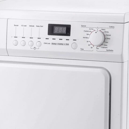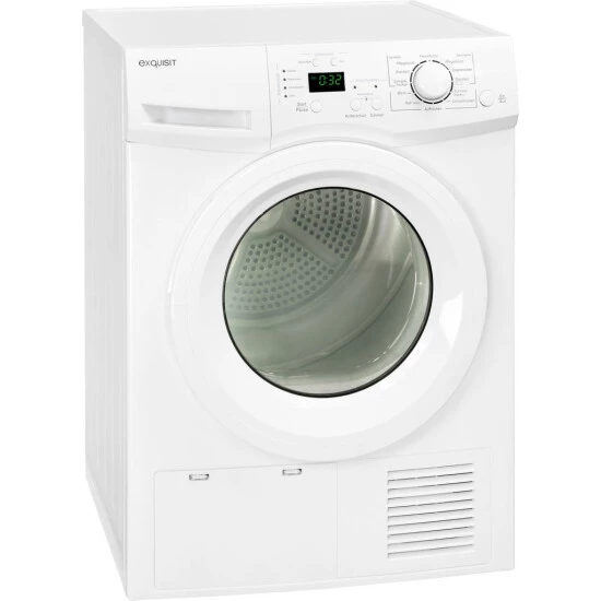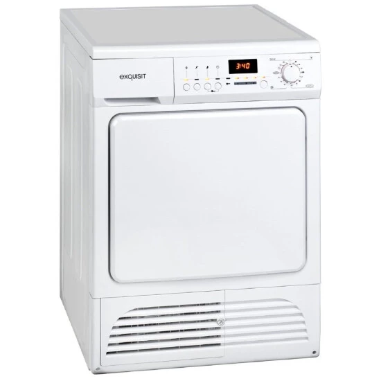 Der Exquisit Kondenstrockner TK 810 E bietet ein Fassungsvermögen von 8 kg und mehreren Elektronikprogrammen. Das Standgerät ist mit einem Türsicherheitssystem, einem Sicherheitsthermostat und Abschaltautomatik ausgestattet und bietet über zeitgesteuerte Programme inklusive zuschaltbarem Knitterschutz und die Möglichkeit, bequem alle Funktionen auf der LED Programmanzeige ablesen zu können hohen Komfort beim Wäsche trocknen.