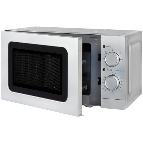 Die WP 700 J17-3 Silber mit der Gehäusefarbe Silber ist eine Unterbau-Mikrowelle aus dem Hause Exquisit und überzeugt mit zahlreichen Funktionen. Sie besitzt eine Front in der Farbe Silber und hat einen Garraum von 20 Liter. Durch Ihre freistehende Bauform kann die Mikrowelle überall problemlos positioniert werden. Sie benötigt nur einen Stromanschluss. Alternativ bietet das Gerät die Alternative zur Unterbau-Montage. Das Gerät für sich hat folgende Ausmaße: 25,9 x 44,0 x 34,9 cm (Höhe/Breite/Tiefe). Die Gesamtleistung von 700 W ist unterteilt in 5 Stufen und bietet Ihnen größtmögliche Flexibilität in der Zubereitung und beim Aufwärmen Ihrer Speisen. Dank des integriertem Timers (manuell) haben Sie die Restlaufzeit Ihrer Programme jederzeit im Blick. Sogar bei schlechten Lichtverhältnissen behalten Sie Dank der hellen Innenbeleuchtung der Mikrowelle den Überblick. Für eine gleich mäßige Erwärmung Ihrer Speisen sorgt der integrierte Drehteller mit einem Durchmesser von 25,5 cm. Wenn Sie eine verlässliche und leistungsstarke Mikrowelle suchen, ist die WP 700 J17-3 Silber von Exquisit genau richtig für Sie.