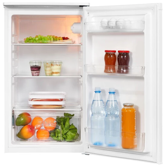 Funktional und praktisch: So ist der Kühlschrank KS116-V-040F weiss in der Farbe Weiß von Exquisit. Die Energieklasse F (Skala Energieeffizienzklasse A bis G) des Gerätes freut nicht nur Sie, sondern auch die Umwelt. Das Gerät selber hat folgende Ausmaße: 85,0 x 48,0 x 51,0 cm (Höhe/Breite/Tiefe). Das Gerät ist freistehend, d.h. es benötigt keinen vorgefertigten Platz in Ihrer Küche, sondern kann bequem an jedem Ort platziert werden. Auf welcher Seite sich das Gerät öffnen lässt, definieren Sie dank wechselbarem Türanschlag. Das Gerät besitzt 92 Liter Nutzinhalt in seinem Kühlbereich, den Sie mit Hilfe von 2 Glasablagen (teilweise einstellbar) bestmöglich für Ihre Bedürfnisse verwenden können. Schnell griffbereit sind die Lebensmittel in den 3 Türablagen gelagert. Ihr Obst- und Gemüse findet bequem Platz in der integrierten Gemüseschublade. Die Temperatursteuerung erfolgt ganz einfach manuell. Durch die integrierte Temperaturüberwachung müssen Sie sich keine Gedanken mehr über auftauchende Temperaturschwankungen machen. Damit Sie auch im Dunkeln treffsicher an Ihre Lebensmittel gelangen, bietet Ihnen das Gerät eine LED-Beleuchtung.