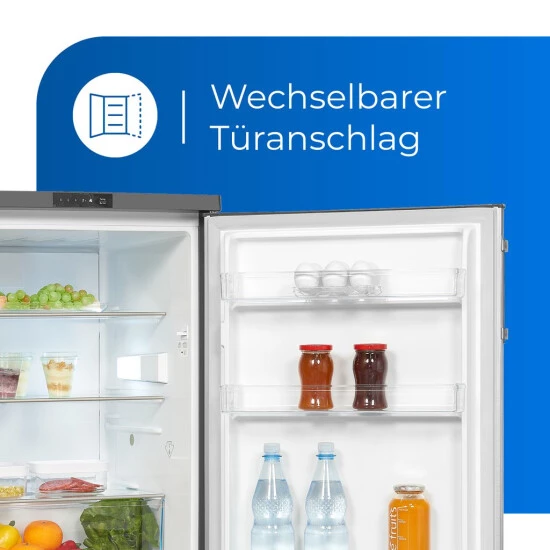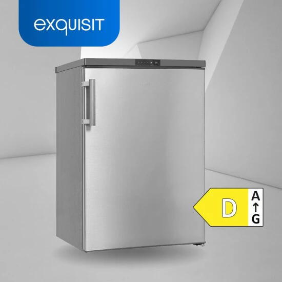Der Kühlschrank sorgt für das komfortable und sichere Lagern Ihrer Lebensmittel und Getränke. Insgesamt stehen Ihnen 134 l Nutzinhalt zur Verfügung. Das Gerät in der Farbe Edelstahloptik hat die Abmaße 85,0 x 56,0 x 57,5 cm (Höhe/Breite/Tiefe) und hat die Energieeffizienzklasse D (Skala Energieeffizienzklasse A bis G). Durch seine freistehende Bauart lässt es sich an jedem Ort aufstellen und in Betrieb genommen werden. Der wechselbare Türanschlag sorgt hierbei für noch mehr Flexibilität beim Aufstellen. Das Gerät bietet Ihnen über 134,0 l Nutzinhalt in seinem Kühlbereich, welcher mit Hilfe von teilweise verstellbaren Ablagen praktisch unterteilt ist. Das Gemüsefach hält dabei Obst und Gemüse allzeit knackig und frisch. Mit der digitalen Temperaturanzeige haben sie jederzeit die gewählten Einstellungen im Blick. Über ein gut lesbares Display haben Sie die gewünschte Temperatur jederzeit im Blick und können bequem einzelne Funktionen des Gerätes steuern. Damit Sie auch bei schlechten Lichtverhältnissen zielsicher an Ihre Lebensmittel gelangen, bietet Ihnen das Gerät eine Beleuchtung.
